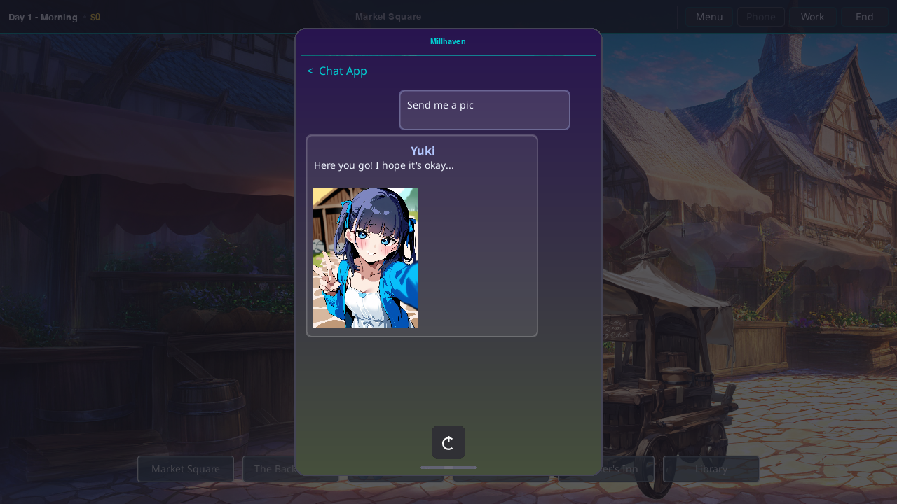 - Phone system — DMs, group chat, selfie requests, gallery, and an MC status tab with animated stat tracking.